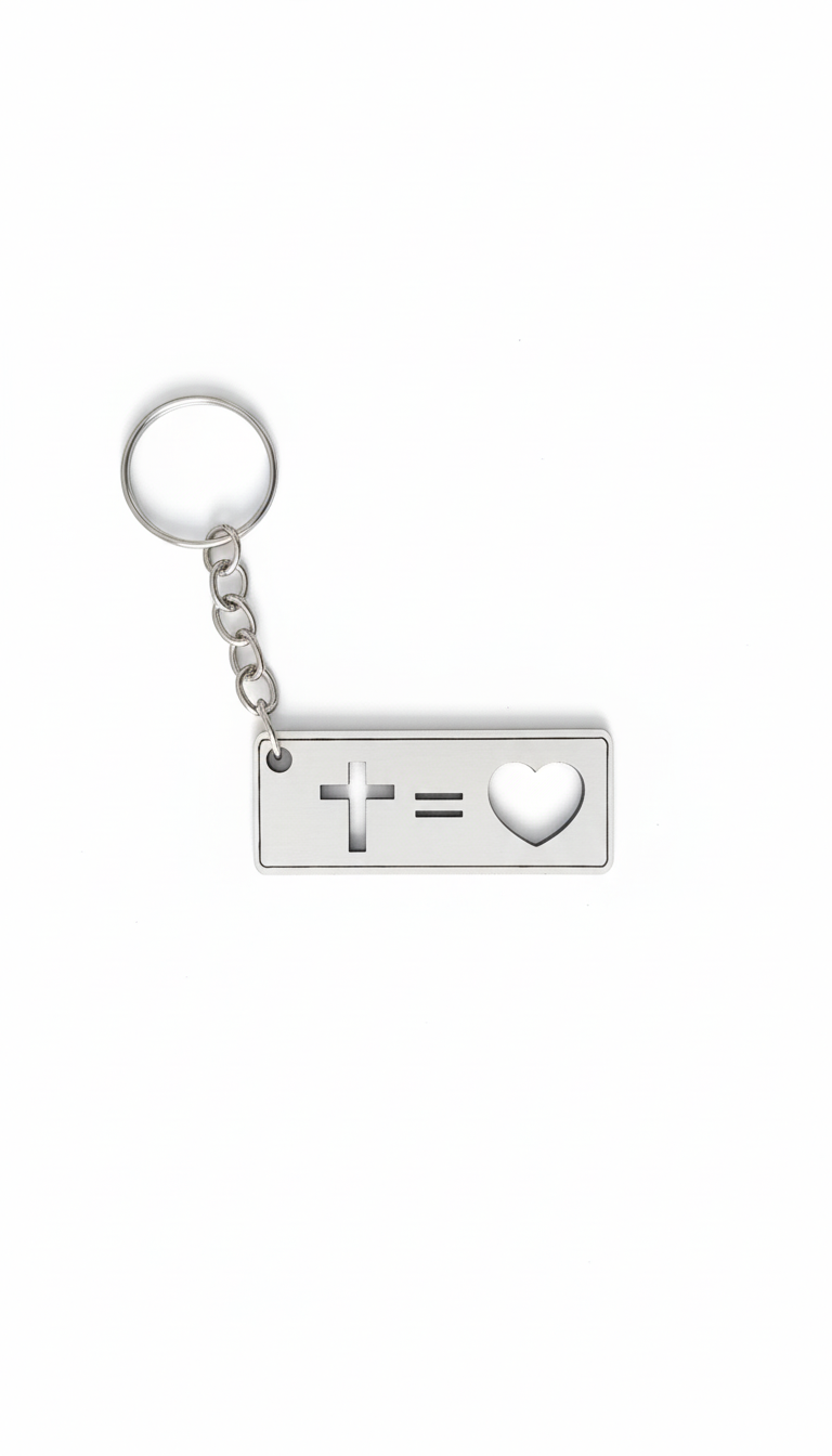 Kit de Chaveiros em MDF 3mm com frente branca, CRUZ = CORAÇÃO vazado.