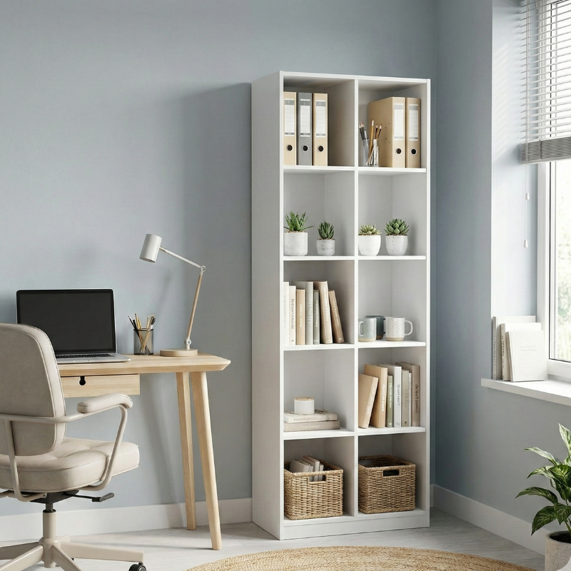 este armário colmeia com 10 nichos proporciona ótima visualização e
