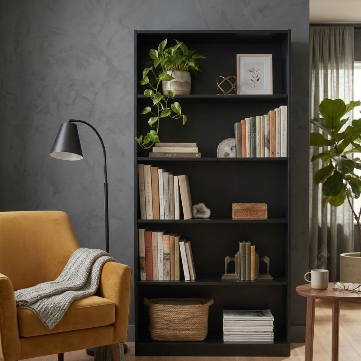 Versátil e funcional, ideal para exibir livros, objetos decorativos e itens pessoais. Perfeito para salas, escritórios ou lojas.