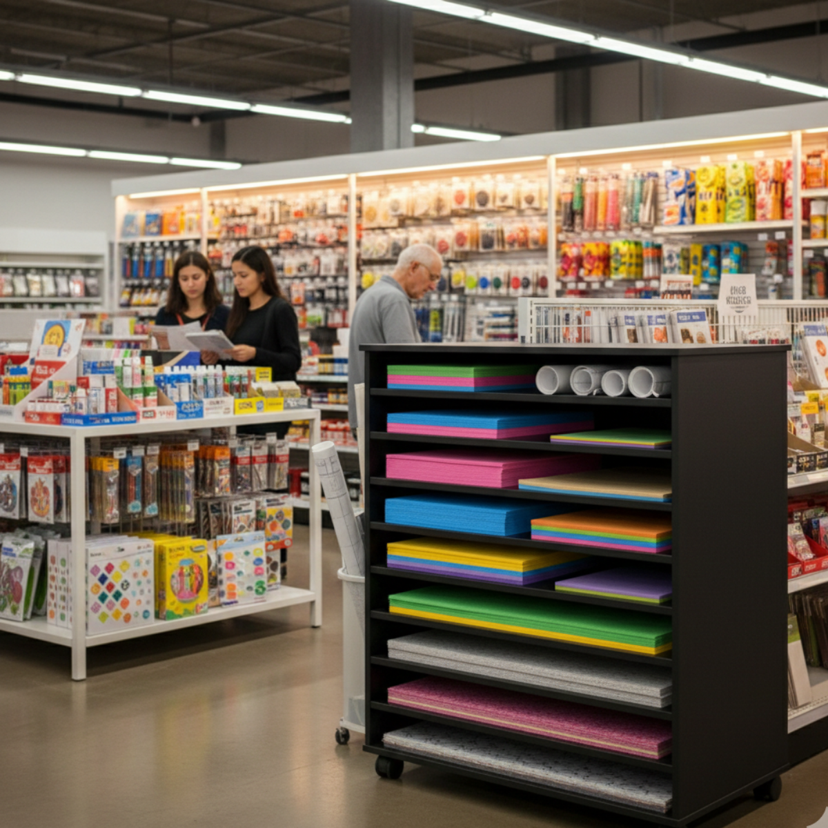 Ideal para comércios, papelarias e ateliês, este armário com 8 nichos é perfeito para organizar cartolinas, ColorSet, EVAs e outros materiais. Prático, com rodízios de gel (2 com trava) que facilitam o transporte e garantem estabilidade.