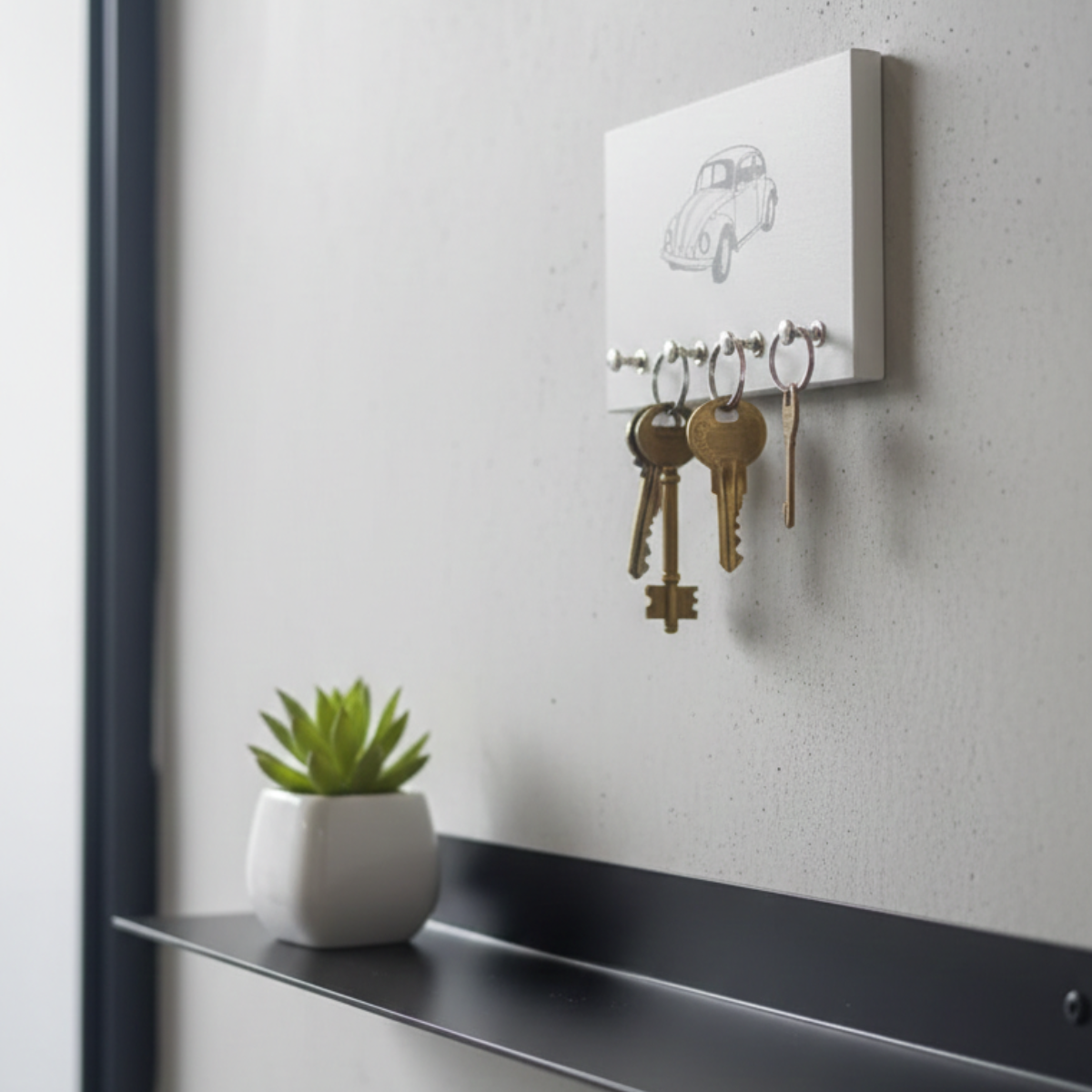 Dê um toque de personalidade à sua entrada e nunca mais perca suas chaves! Com um design icônico do Fusca e acabamento fosco, este porta-chaves une funcionalidade e decoração em uma peça compacta e moderna.